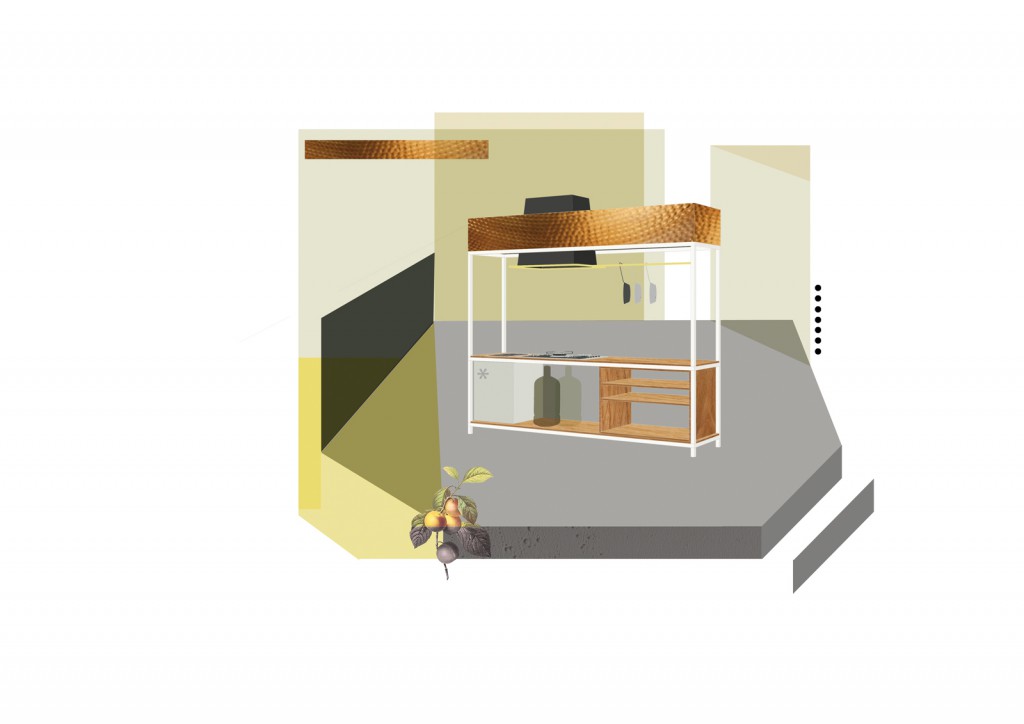 Die sogenannte „Wertvoll Küche“ erzeugt Wertschätzung für Essen und Zubereitung von Lebensmitteln. Dabei werden durch eine „transparente“ Gestaltung Werte vermittelt ohne zu belehren. Die Grenze zwischen Küche und Gastraum löst sich auf. Durch Transparenz Wertschätzung erzeugen. Ausgehend von den unterschiedlichen Arbeitsschritten einer Zubereitung sind sieben Module entstanden, welche freistehend, variabel anzuordnen und von beiden Seiten nutzbar sind. Alles ist einsehbar, alles ist nachvollziehbar. Eine Rückbesinnung auf das Wesentliche. Eine Rückbesinnung auf die Wertvoll Küche.